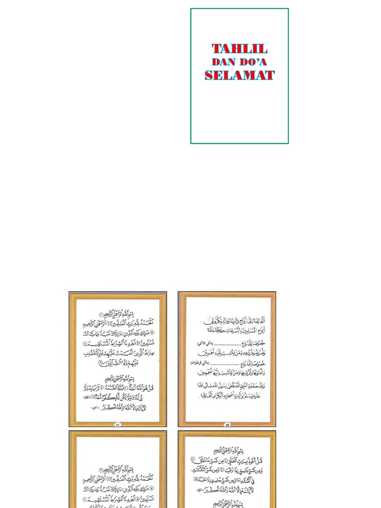 Bacaan tahlil dan doa, doa tahlil, tahlil arwahfull description. Kami juga menyertakan susunan zikir dan tahlil ini dengan terjemahan yang kami buat. Doa tahlil ununtuk orang meninggal. Jemputan majlis doa selamat dan tahlil docx. Bacaan doa tahlil dan doa setelah tahlil dilengkapi urutan atau susunanya sesuai budaya masyarakat indonesia lengkap untuk yang mencari cara tahilan.
